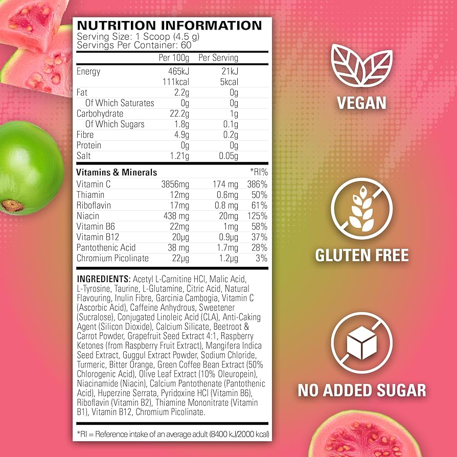 A number of ingredients have been added to help stimulate the body’s fat receptor cells and help boost metabolism to promote an increased level of fat cell break-down. Green Coffee bean extract has been heavily researched and scientifically validated to reduce body weight and BMI ¹. In addition, Acetyl L-Carnitine HCl and Conjugated Linoleic Acid (CLA) have shown to reduce fat inhibition and reduce fat tissues² ³ . To help reduce stubborn belly fat, Garcinia Cambogia has been added due to its potential benefits of reduced abdominal fat and prevention of visceral fat ⁴.
