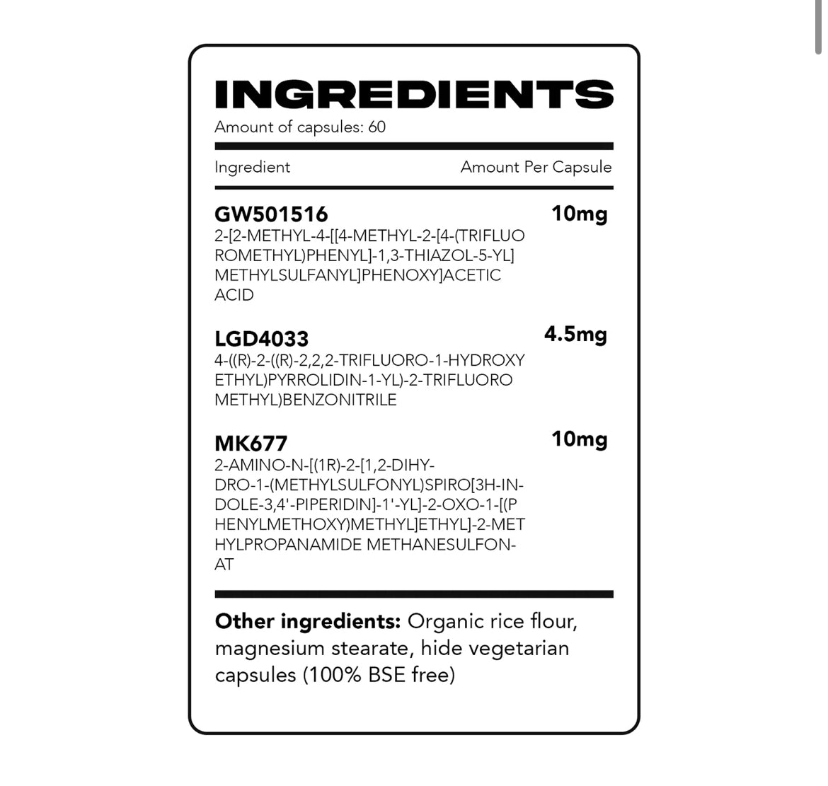 Our Quantum Stack consists of MK677, GW501516 and LGD4033 – three popular compounds in the realm of bodybuilding.